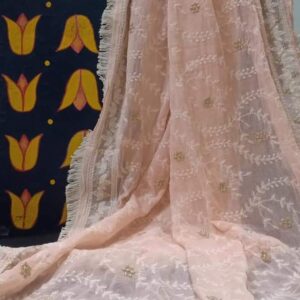 Light peach embroidery chiffon dupatta