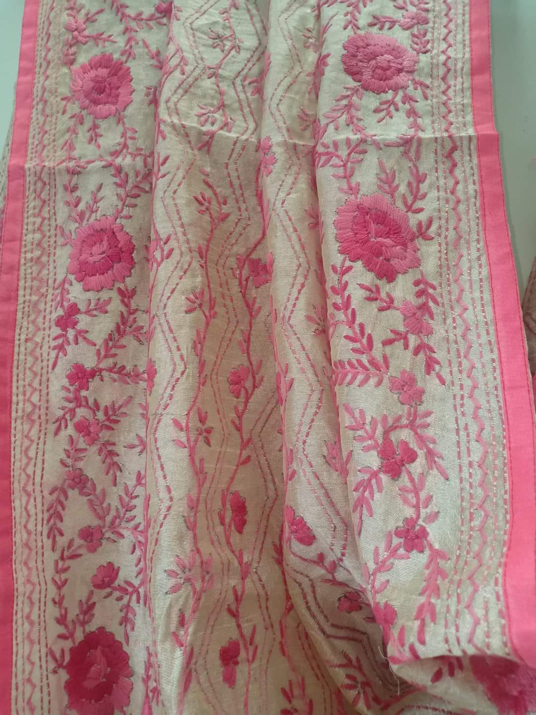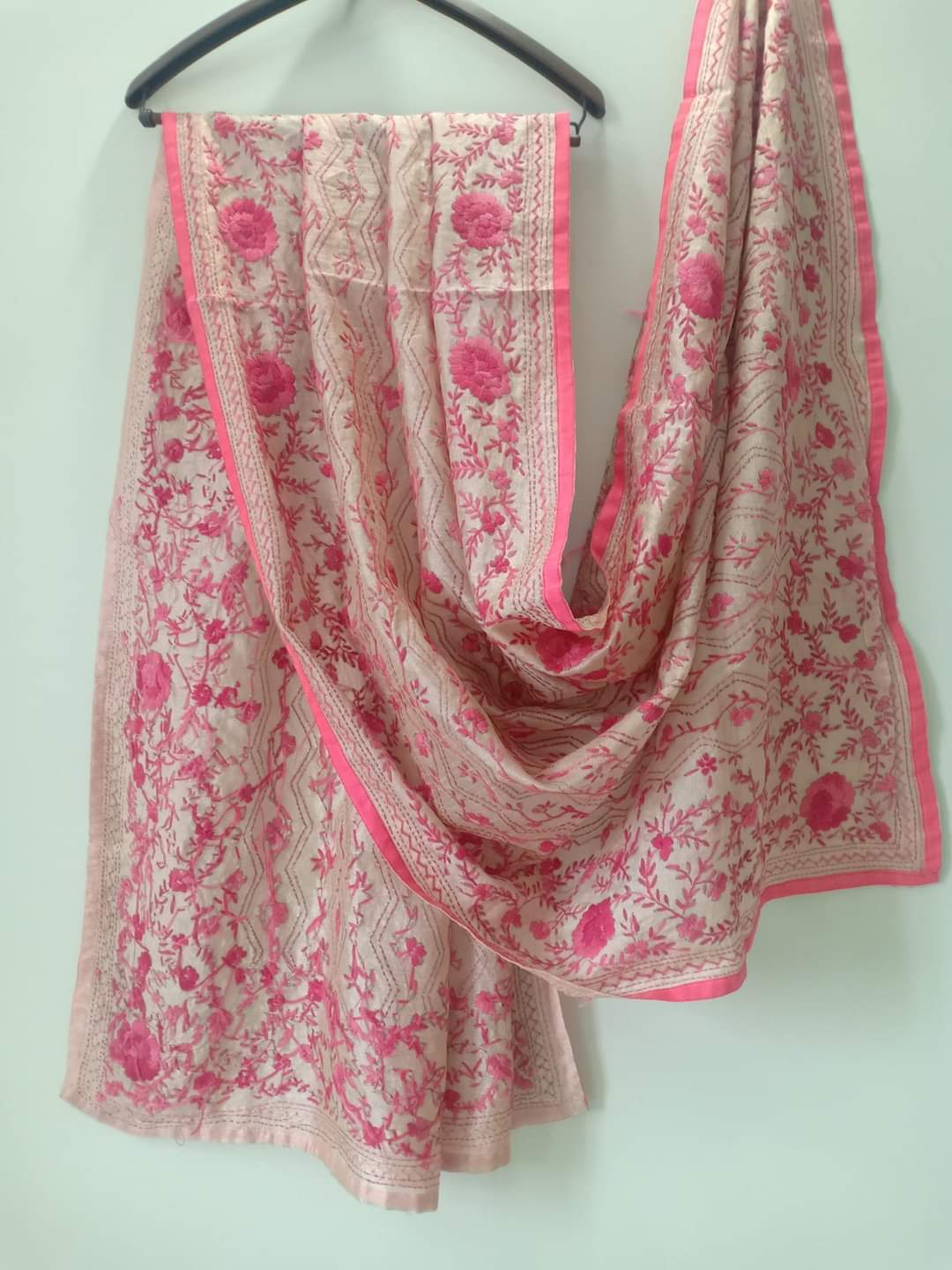 Cotton silk kalamkari print dupatta with mirror work embroidery